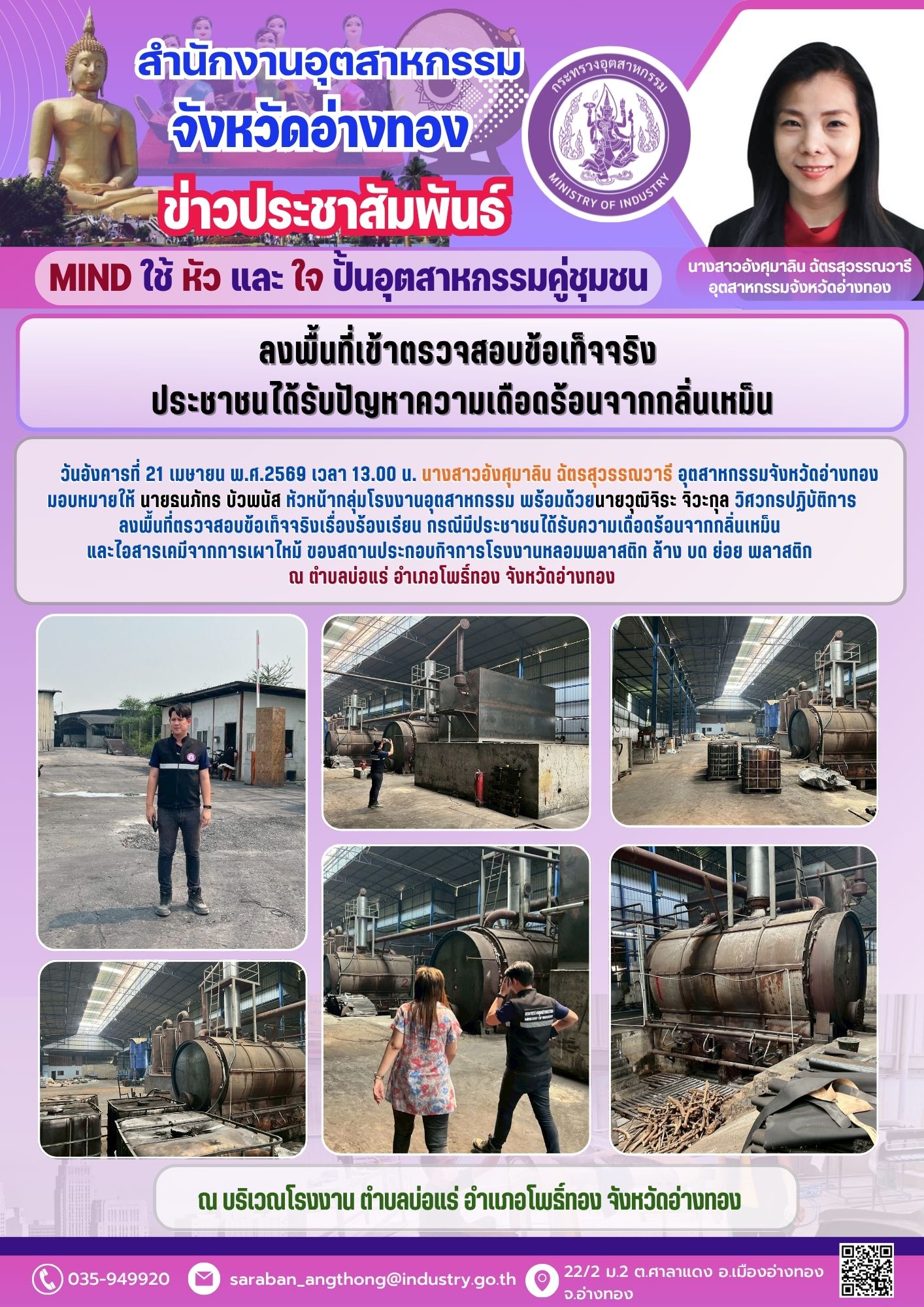 ลงพื้นที่เข้าตรวจสอบข้อเท็จจริงประชาชนได้รับความเดือดร้อนจากกลิ่นเหม็น